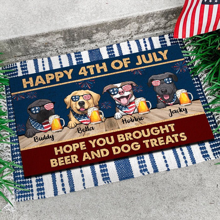 4th July Pet Doormat, Happy Independence Beer Dog Treats, Pet Lover Gift, Funny Welcome Mat, Custom Mat, Holiday Decor