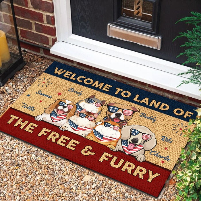 4th July Pet Doormat, Land Of Free & Furry, Pet Lover Gift, Funny Mat, Cat Dog Mat, Holiday Decor Gift