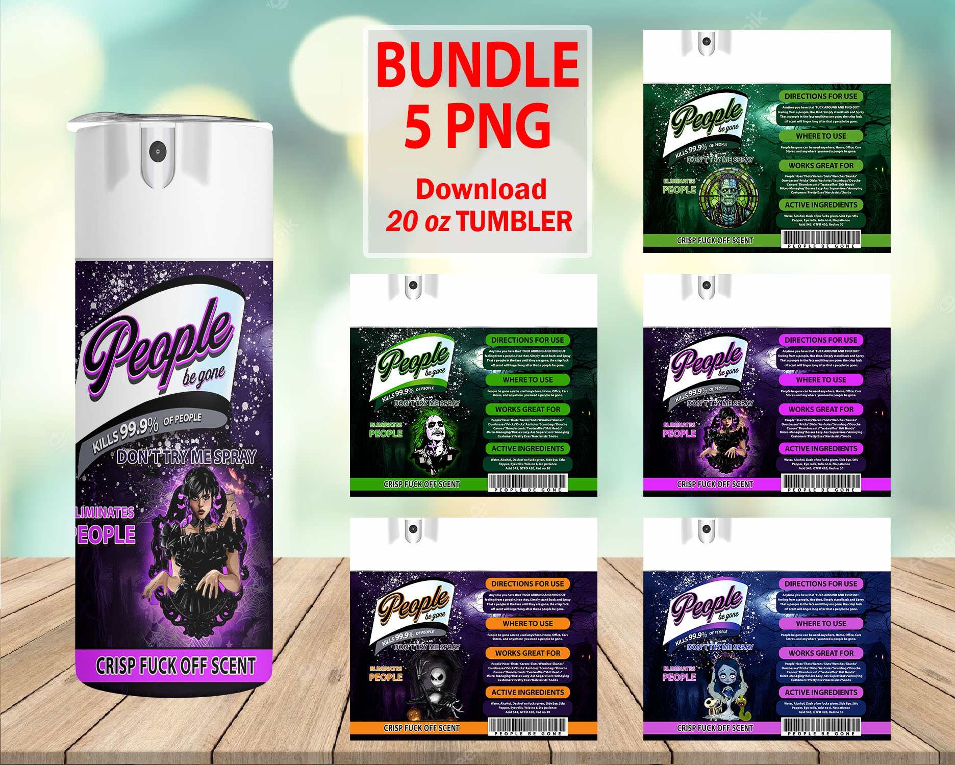 Bundle 5 Design People Be Gone Spray 20oz Skinny, Tumbler Sublimation Bundle, People Be Gone PNG Download, Halloween Horror Movie Characters