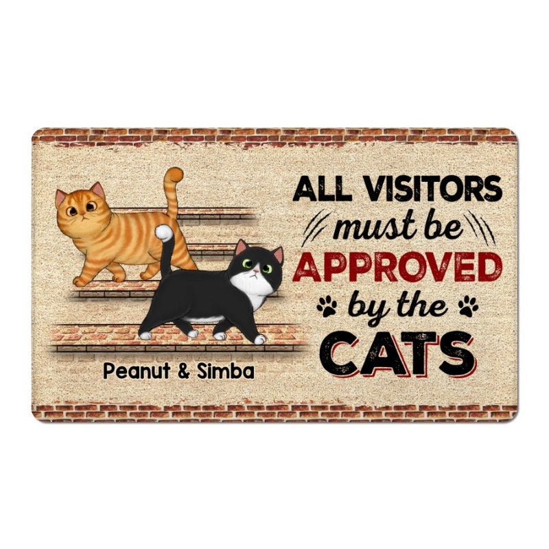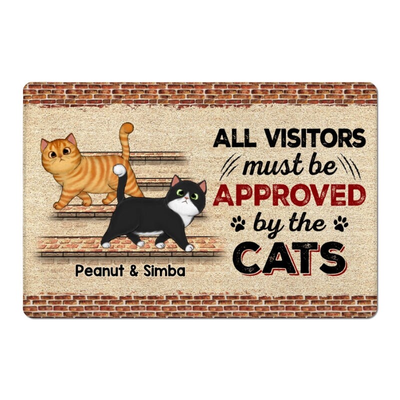 Custom Cat Doormat, Brick Background Visitors Must Be Approved By The Cats, Personalized Mat, Home Decor, Cat Lover Gift, Funny Mat