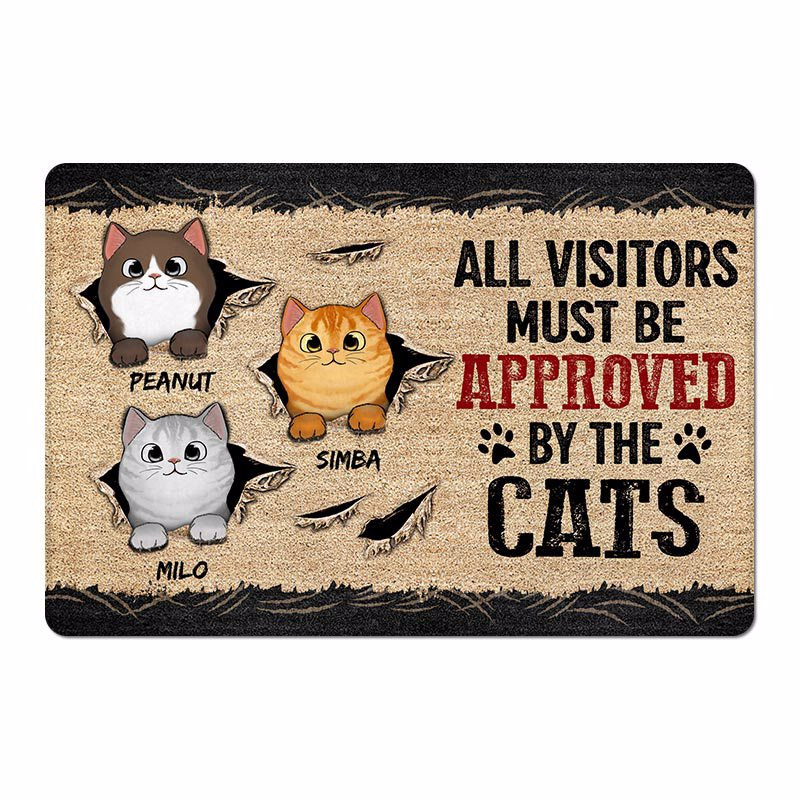 Custom Cat Doormat, Cat Scratch All Visitors Must Be Approved By The Cats, Personalized Mat, Home Decor, Cat Lover Gift, Funny Doormat