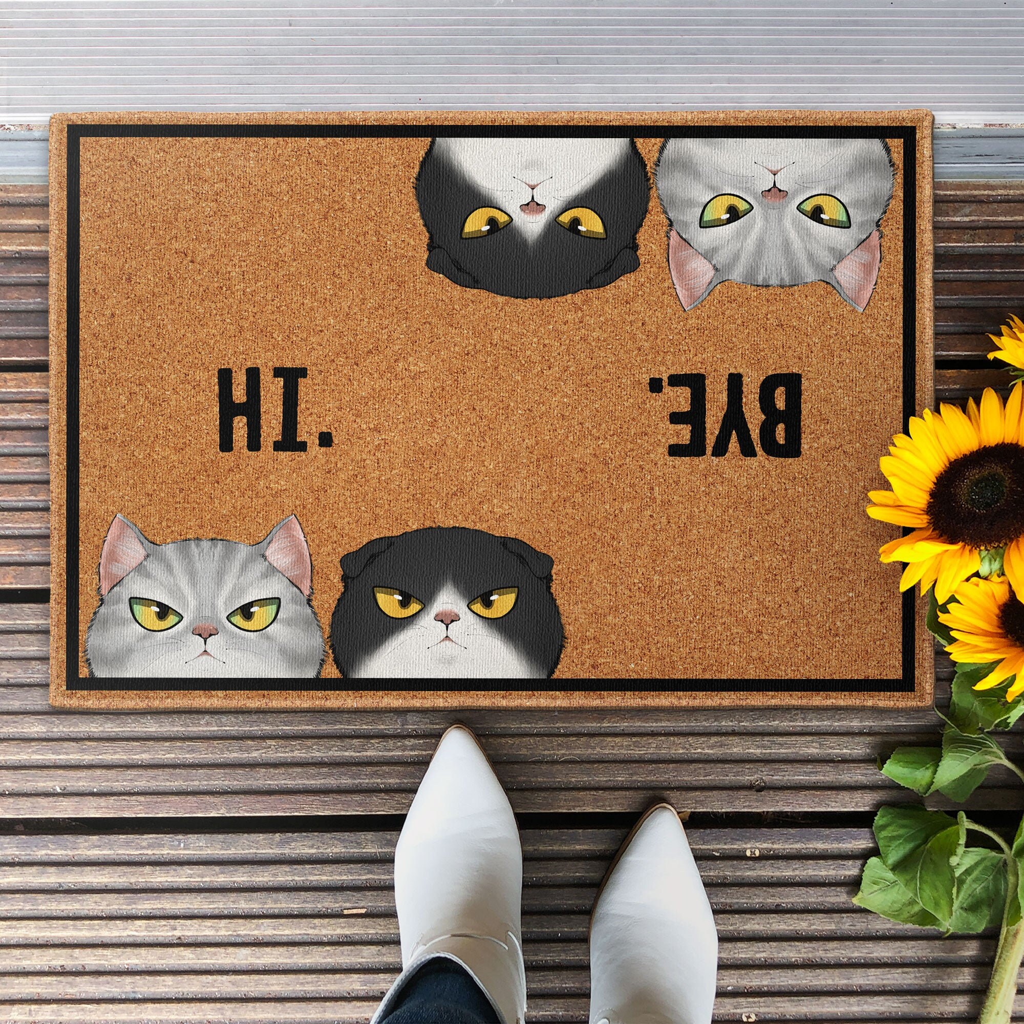 Custom Cat Doormat ‘ Hi Bye Peeking Cat ‘ Personalized Mat ‘ Funny New House Gift ‘ Cat Lover Gift ‘ Cat Mom Dad Gift ‘ Welcome Mat Funny