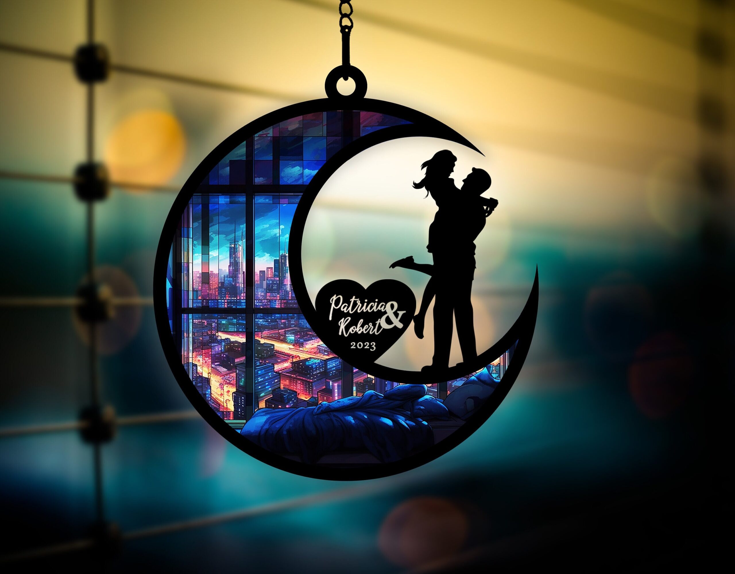 🎁 Personalized Couple On Moon Windows Hangings| Handcrafted Suncatchers| Custom Wedding Gift, Wife, Husband Boyfriend, Gift For Couple