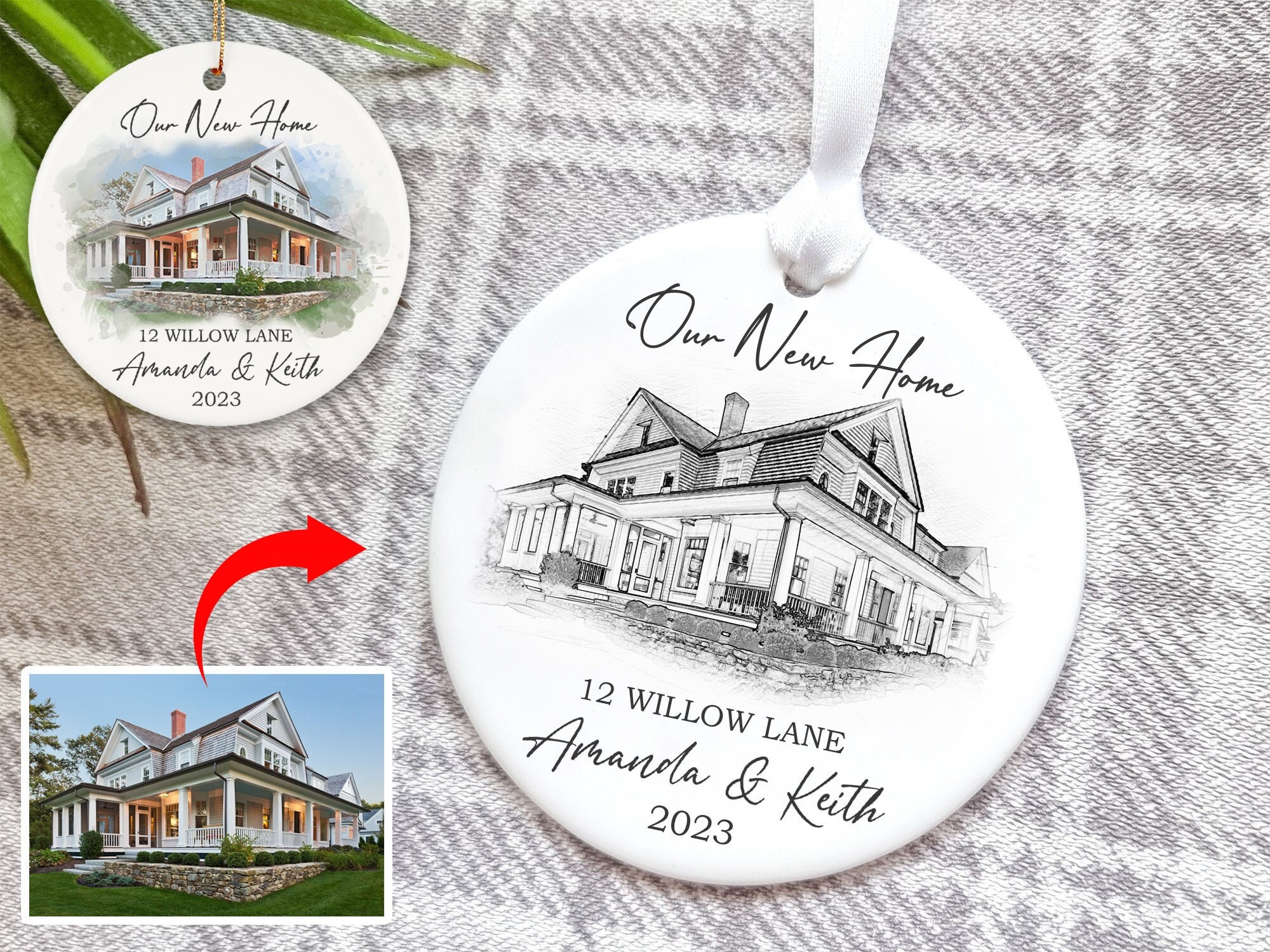 NEW! Personalized Pencil House Sketch Ornament, Custom Watercolor House Ornament, House Portrait, New Home Photo Ornament 2023, Couples Home