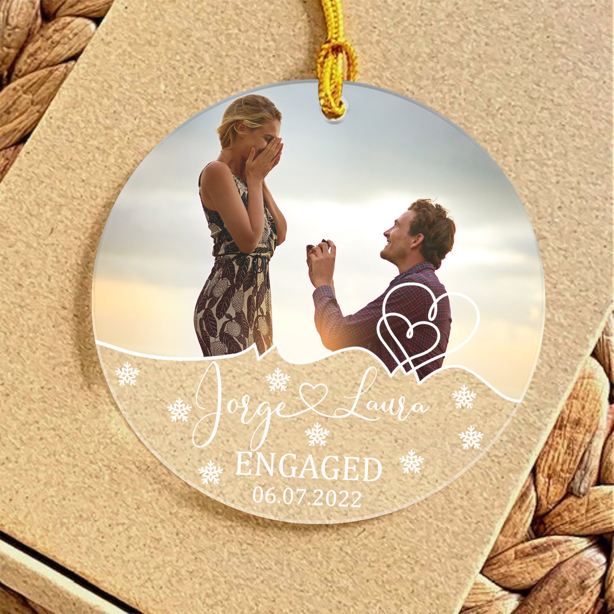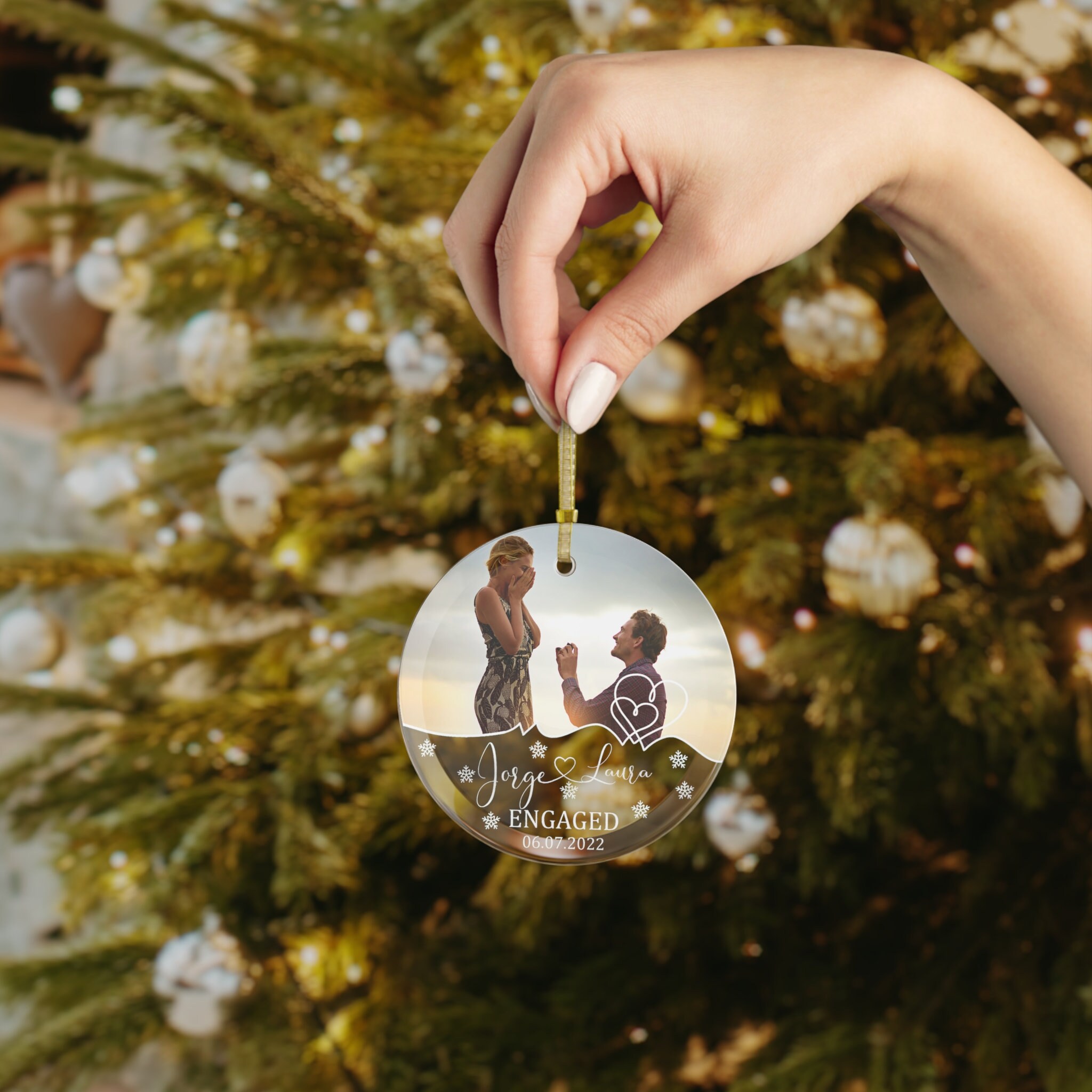 Our First Christmas Engaged Glass Ornament, Personalized Wedding Ornament 2022, Wedding Gift for Wife & Couples Custom Gift for Newlywed