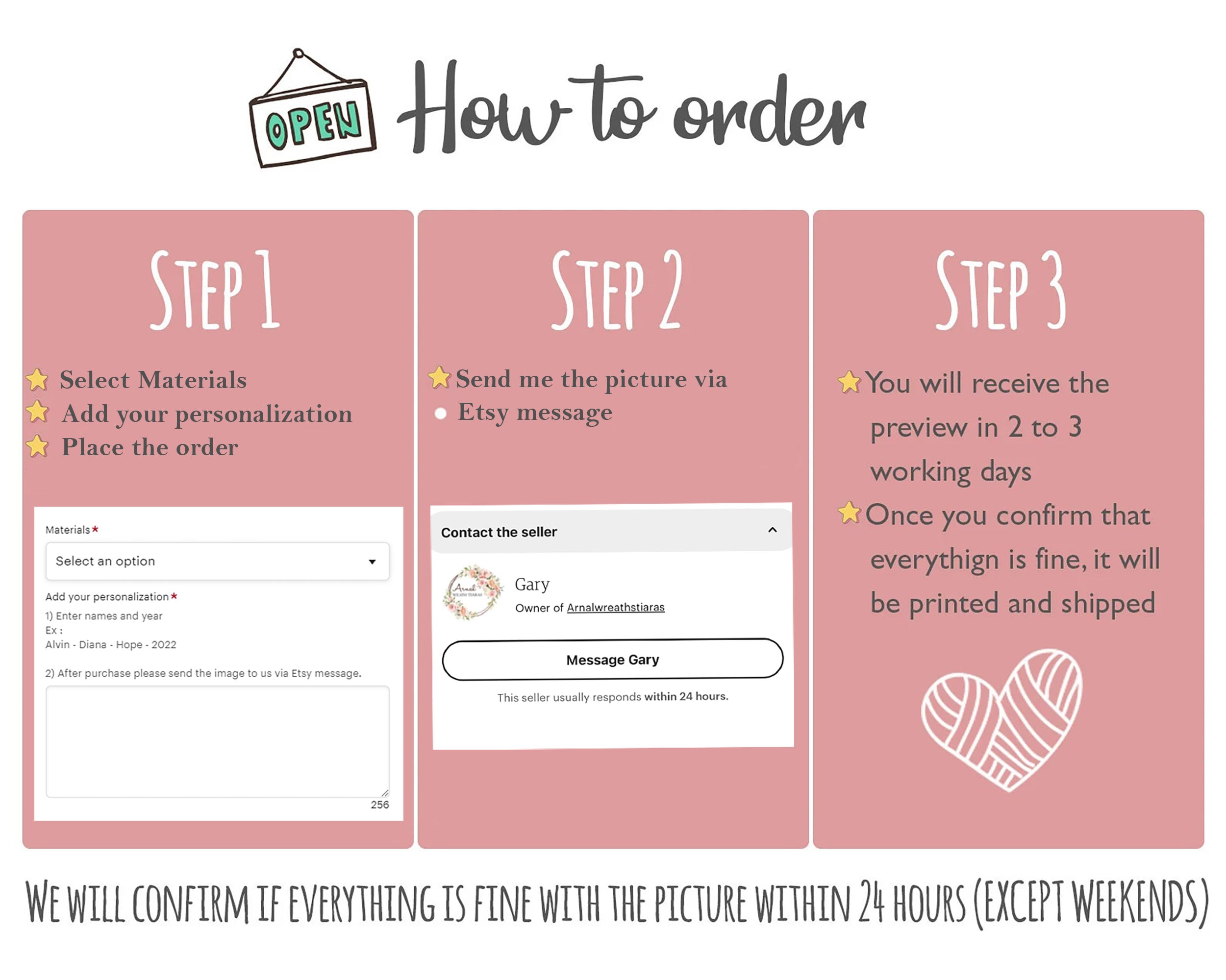 2) After purchase please send the image to us via Etsy message.