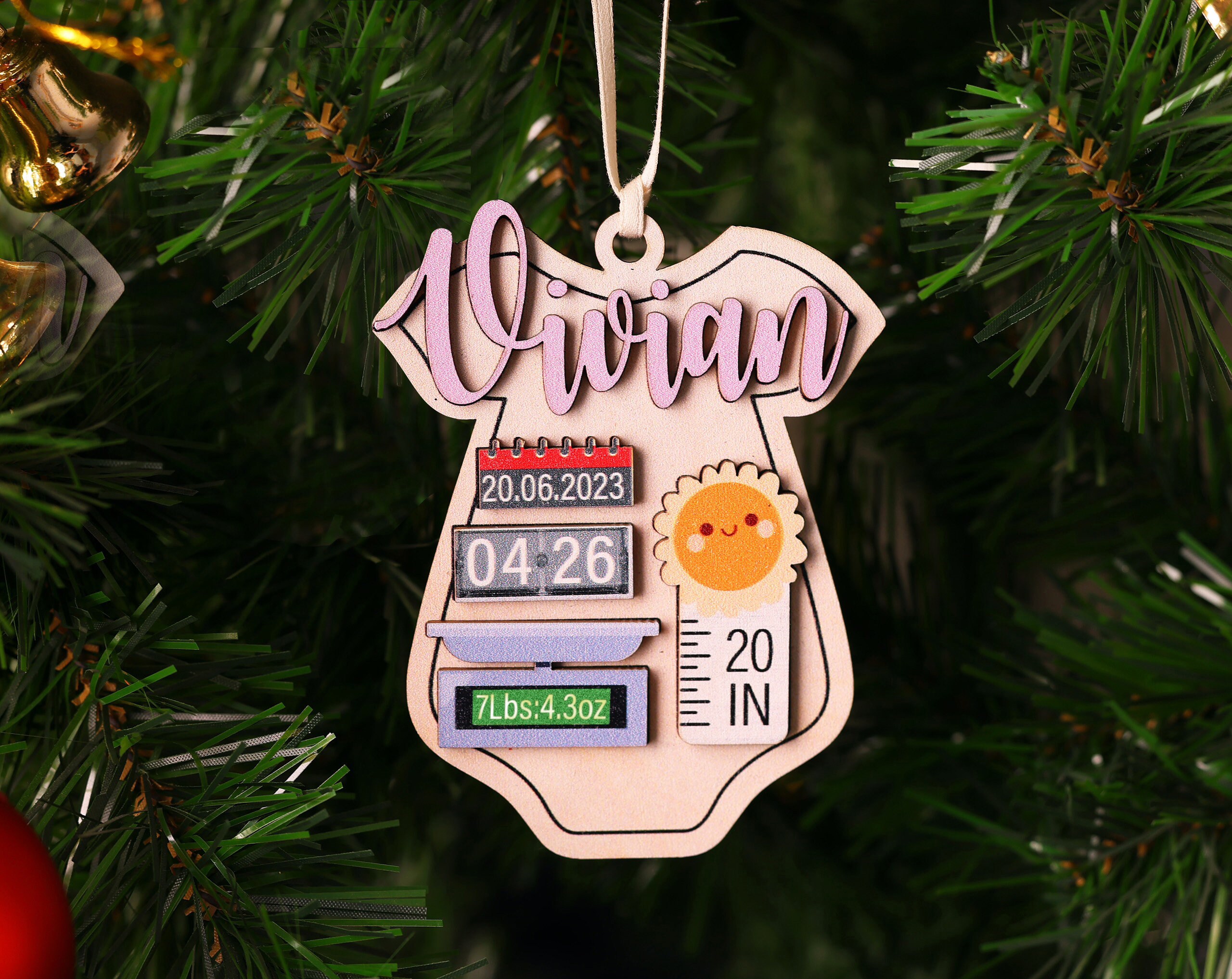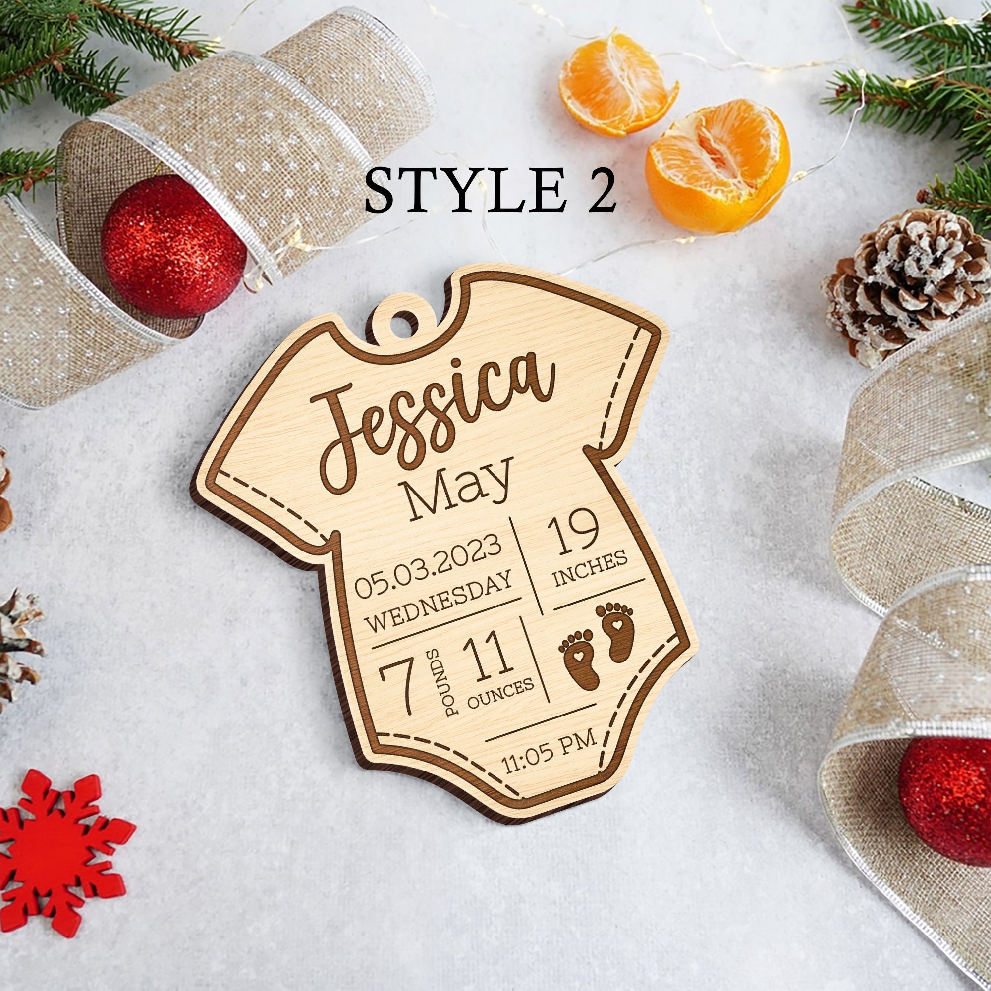 This is a 3D ornament featuring information all about your child. This is the perfect keepsake ornament for any new child. This ornament includes babies birth time, weight at birth, length at birthday, first and middle name and date of birth.This ornament is fully made to order and can be 100% customized. It is laser cut.