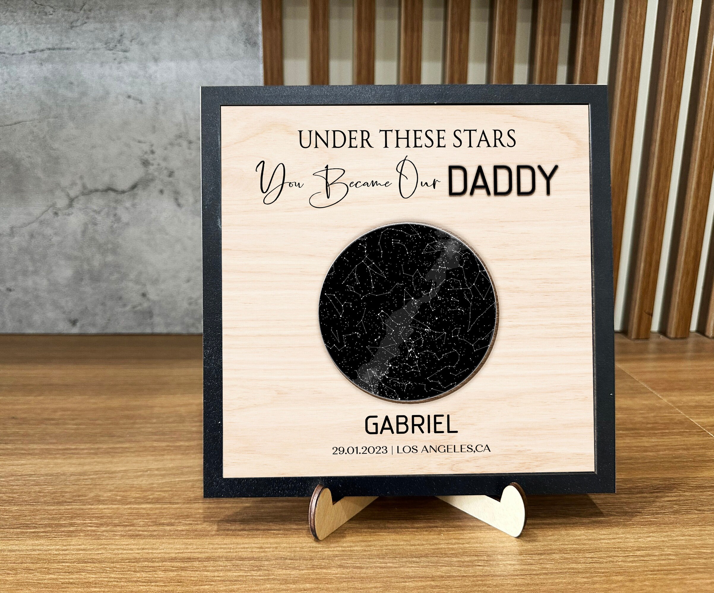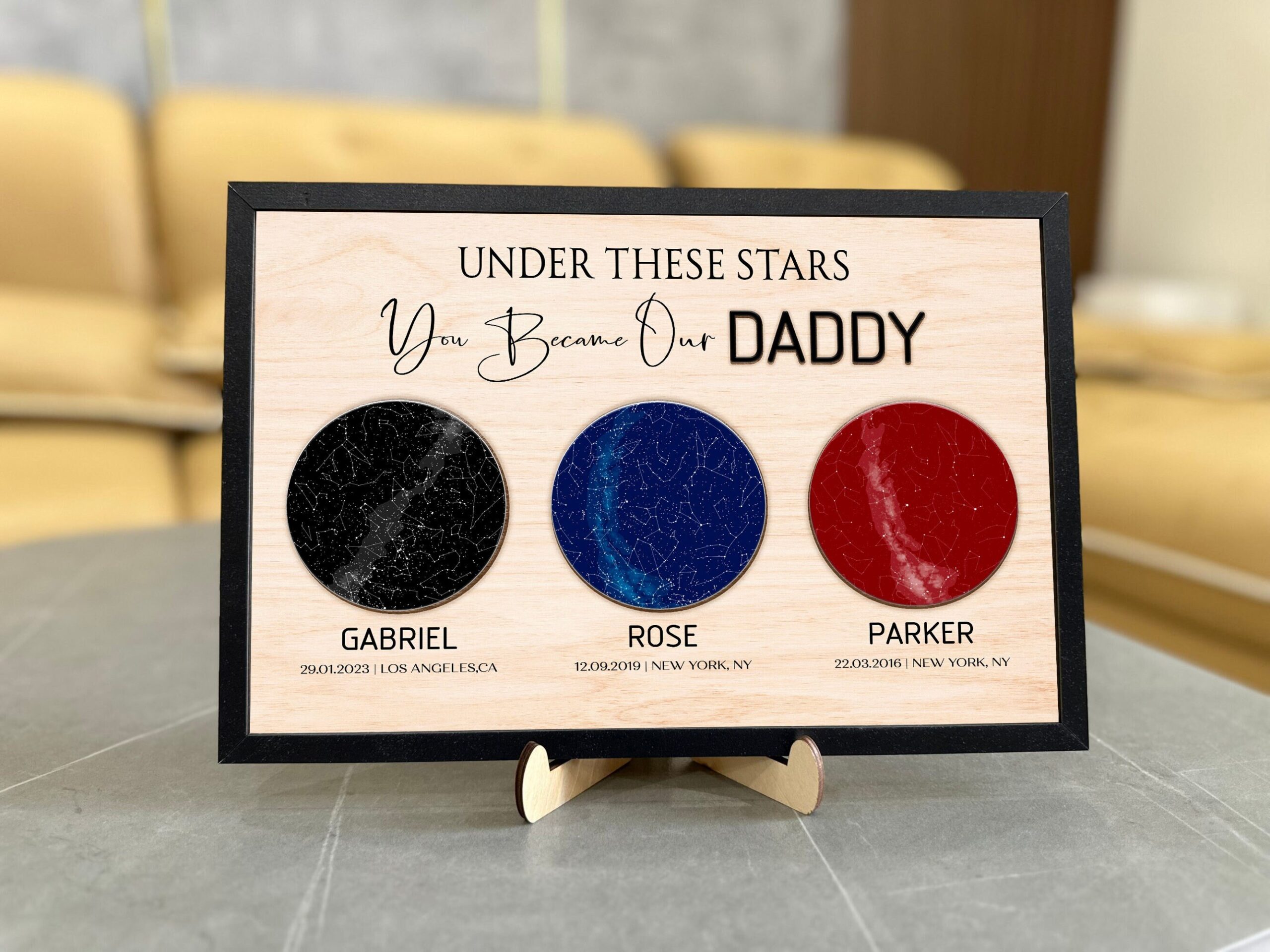 The Day You Became My Dad Wooden Sign Board, Fathers Day Gift, Birthday Gift for Dad, Night Sky Children Gift For Dad, Personalized Dad Gift